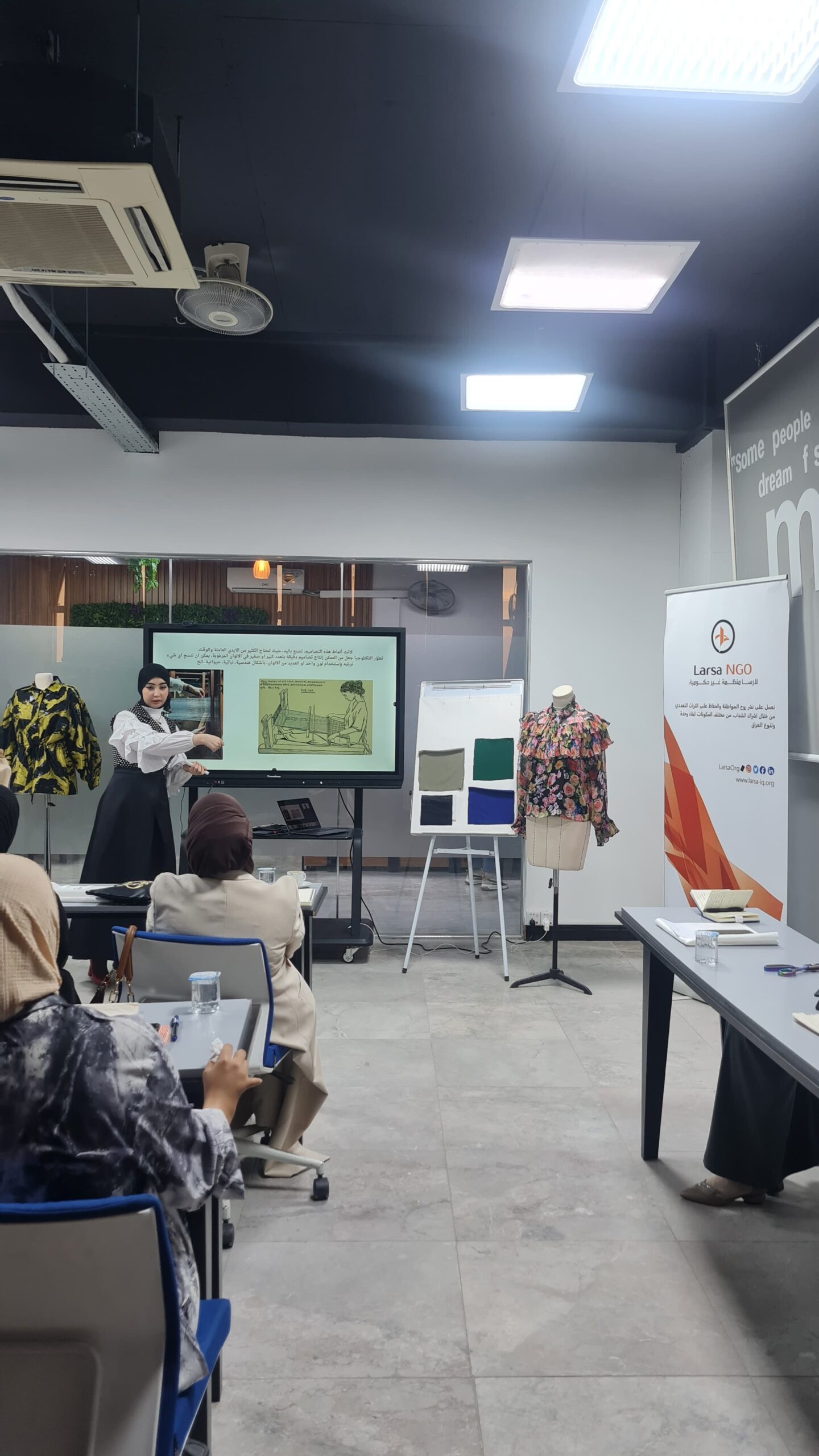Larsa Organization, in collaboration with Patron Academy—a specialized fashion design academy—organized a special training workshop entitled: “Fabrics: Uses and Handling Techniques”